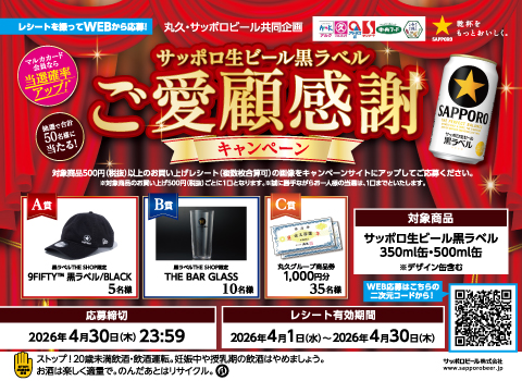 【サッポロビール】サッポロ生ビール黒ラベルご愛顧感謝キャンペーン