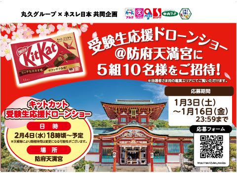 【ネスレ日本】受験生応援ドローンショー@防府天満宮に5組10名様ご招待!