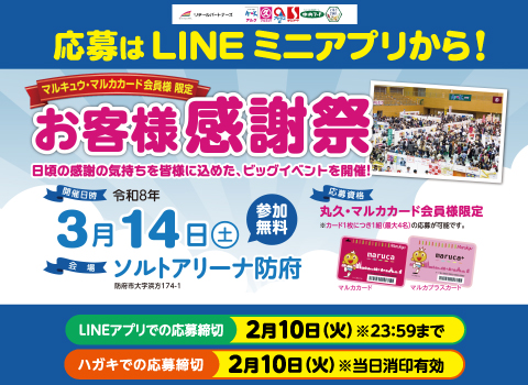 丸久・マルカカード会員様限定!抽選で約4000名様をお客様感謝祭にご招待いたします!