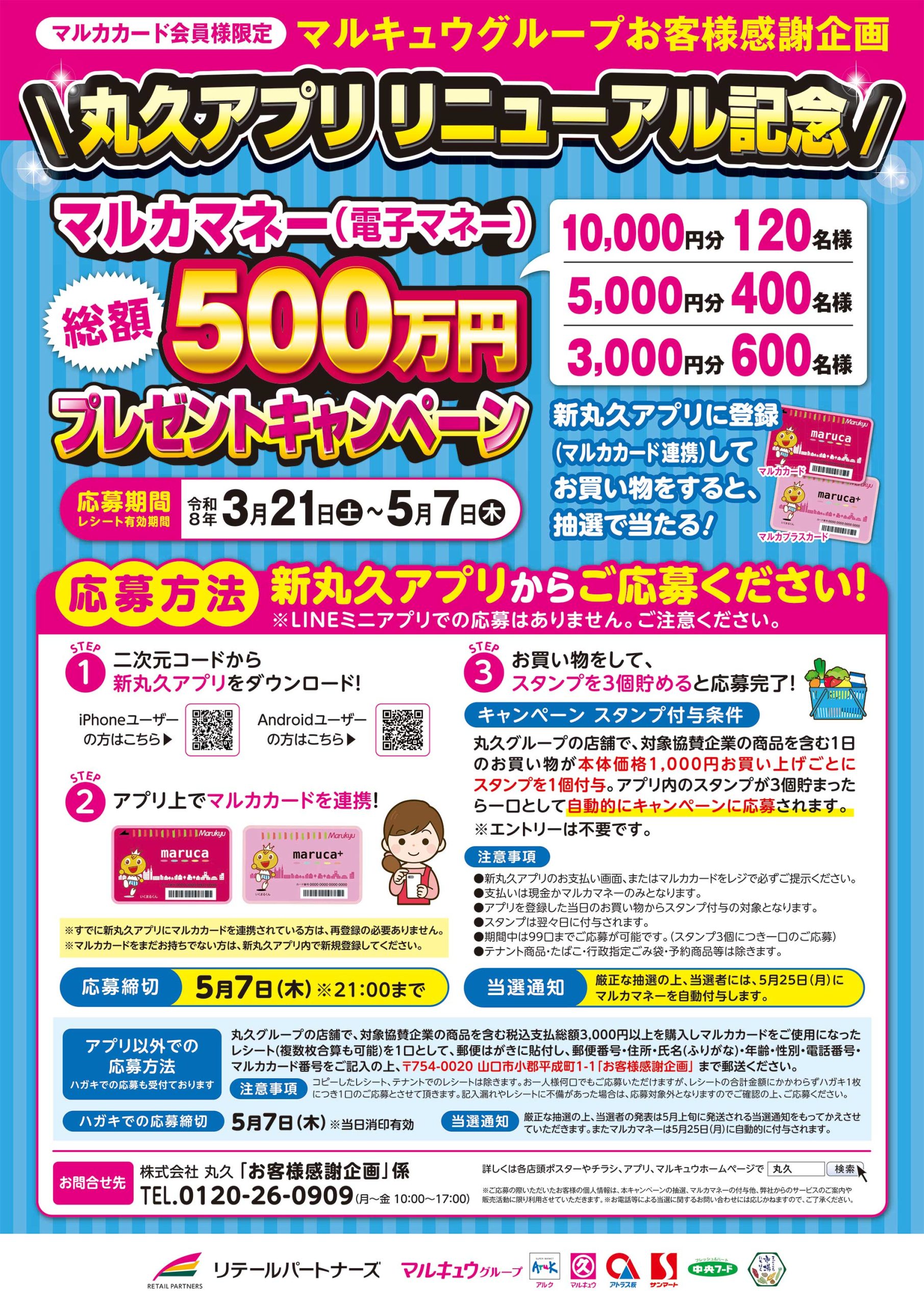 【マルキュウグループ お客様感謝企画】500万円マルカマネープレゼントキャンペーン