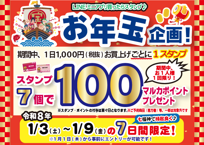【お買い物スタンプ企画】お年玉企画!!スタンプ7個で100マルカポイントプレゼント!