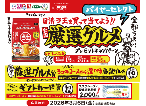 【日清食品】日清ラ王を買って当てよう!全国厳選グルメプレゼントキャンペーン